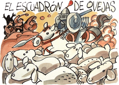 D. Quijote: ¡Adelanteee, Rociinante, que con mi lanza en ristre detendremos a esos infieles!